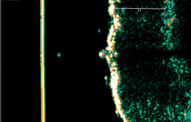 At the two-week follow-up visit after treatment was completed, the outside of the ear shows no signs of cancer. The ultrasound image shows that Image-Guided SRT continued to eliminate the cancer. At the follow-up appointment, the ultrasound image showed no signs of cancer.